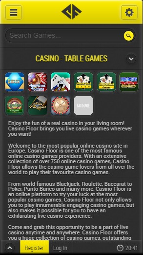 CasinoFloor работает на программном обеспечении Microgaming, Net Entertainment, BetSoft, Big Time Gaming, ELK Studios, Genesis Gaming, lightningboxgames, Play'n GO, Quickspin, Rabcat, Thunderkick, Games Global, 2by2 Gaming, bluberi, EveryMatrix, Games Warehouse, Leander Games, NextGen, NYX Interactive, omi-gaming and Geco Gaming , предоставляемом через веб-платформу. У казино также есть мобильная версия, предлагающая широкий выбор игр для смартфонов и планшетов.Blackjack