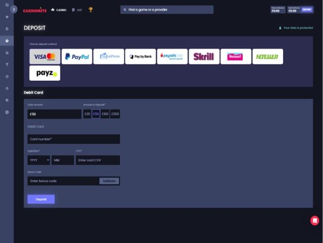 Casinomite имеет все необходимые лицензии и регулируется Управлением по азартным играм Мальты и Комиссией по азартным играм Великобритании .