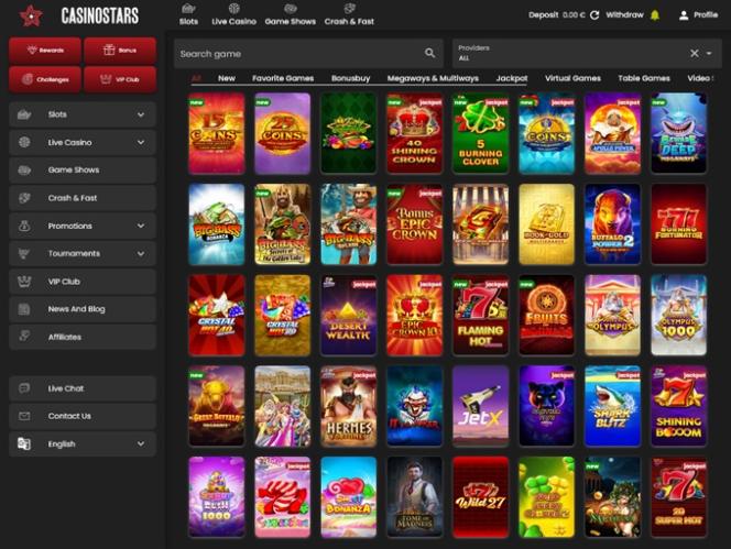 Что меня действительно впечатлило в CasinoStars, так это дизайн. Сайт выглядит современно, аккуратно и удобен в использовании, даже при переключении между играми. Всё загружается быстро, структура логична, и в целом он кажется более продуманным по сравнению со многими другими казино.