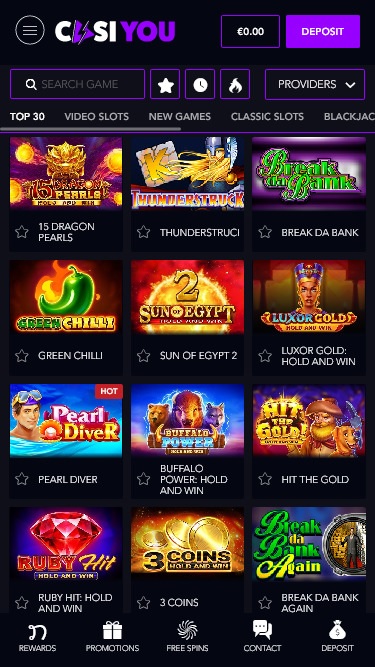 Несмотря на то, что в казино CasiYou отсутствуют некоторые популярные категории онлайн-азартных игр, оно предлагает богатую коллекцию онлайн-слотов, включающую первоклассные игры всех типов. Вот некоторые из них: