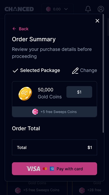 Игроки, желающие приобрести пакеты услуг в магазине Chanced Casino, могут использовать кредитные карты Visa , Mastercard , American Express и Discover , а также прямые банковские переводы .
