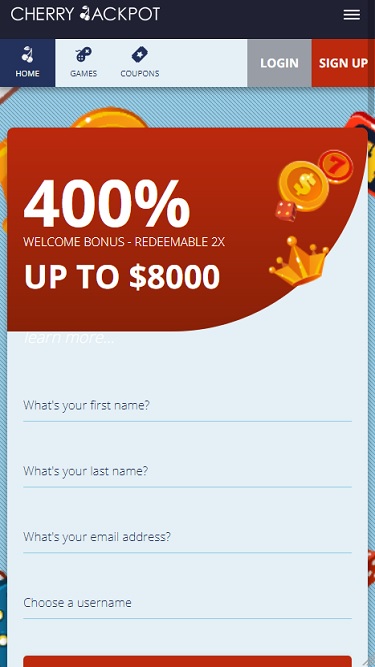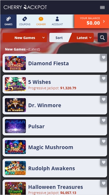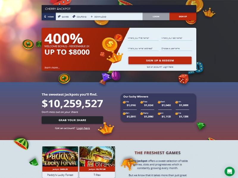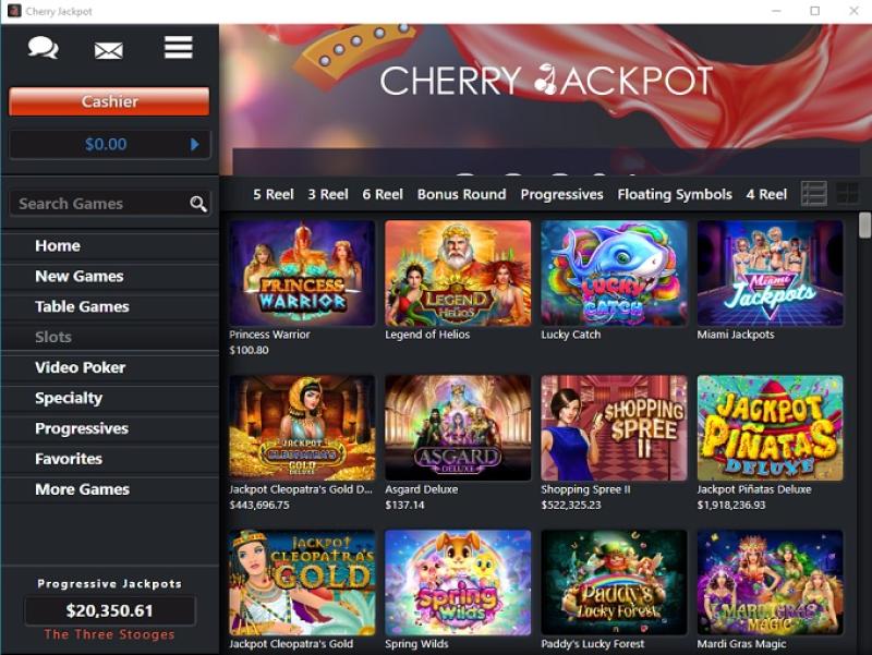В Cherry Jackpot представлен неплохой выбор слотов, включая полный ассортимент классических и видеослотов от RTG. Казино также предлагает прогрессивные джекпоты во многих своих играх с огромными призами. Поддерживается и мобильная игра, так что вы можете играть в слоты на ходу.