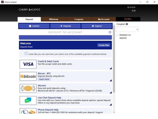 Система банковских операций в Cherry Jackpot Casino хороша для сайта, ориентированного на американскую аудиторию. Казино принимает American Express, банковские переводы, MasterCard, Skrill, Neteller, Visa, ecoPayz и Bitcoin для пополнения и вывода средств. Время обработки выигрышей составляет 24-48 часов, а выплаты могут занять на несколько дней больше. Еженедельный лимит на вывод выигрышей составляет 4000 долларов.