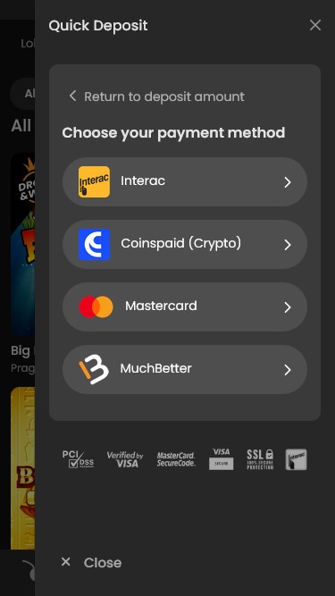 В лобби казино используется сетчатая планировка, которая акцентирует внимание на захватывающих и уникальных играх, таких как: Live - Spaceman, Cabin Crashers, Aviator, Limbo, Turn Your Fortune, Grand Wheel, Four Aces, MacLudo, Dices и многие другие.