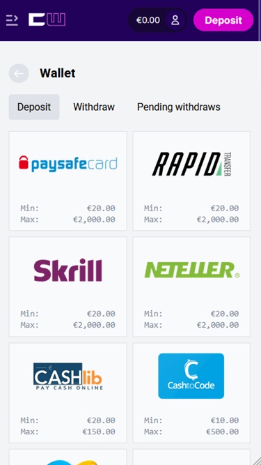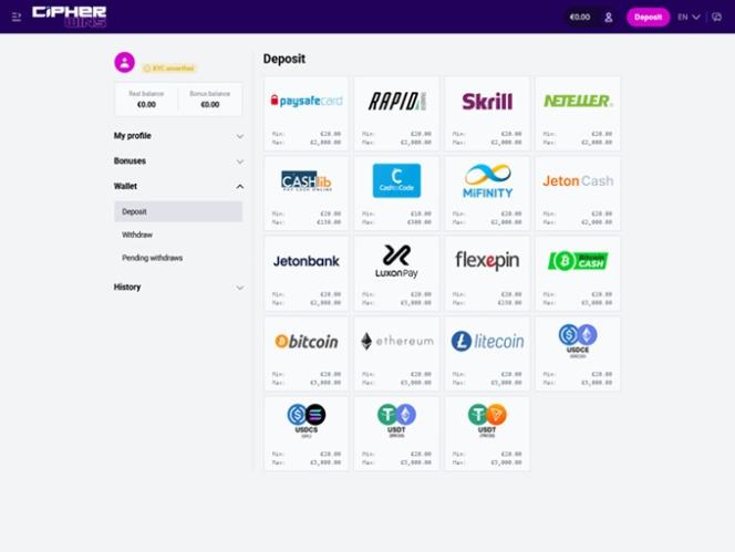 Хотя у нас нет полной информации о программе лояльности, мы знаем, какие акции и бонусы могут ожидать игроки в Cipher Wins. Новые игроки могут получить приветственный пакет , включающий бонус за пополнение счета как для ставок на спорт, так и для игр в казино.