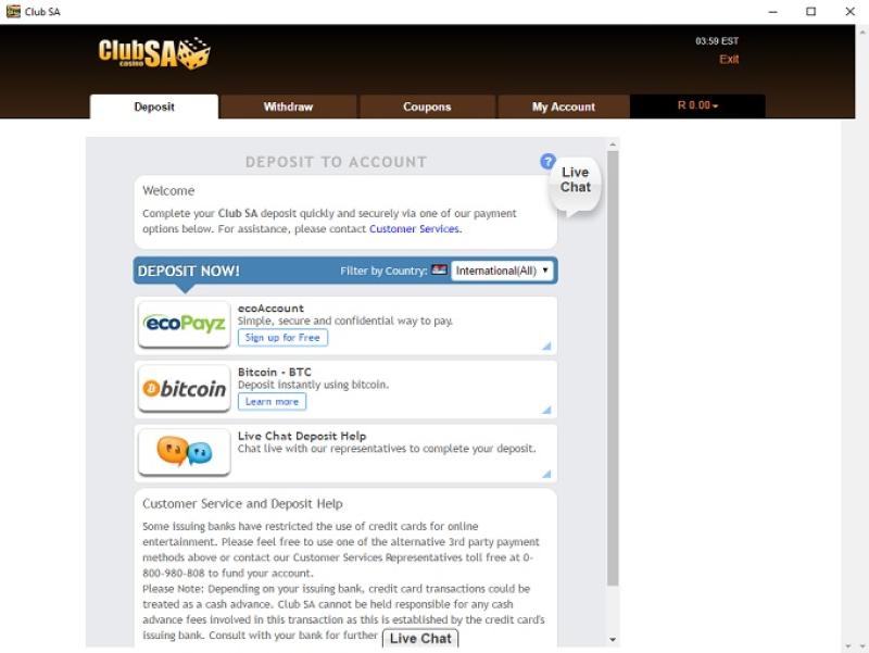 Club SA Casino не получил одобрения от Wizard of Odds.