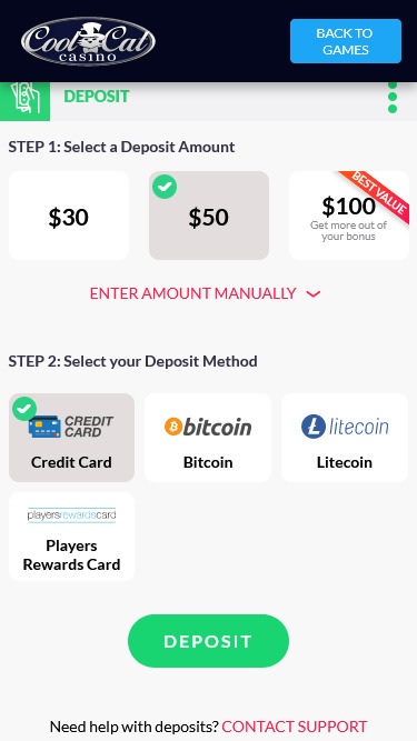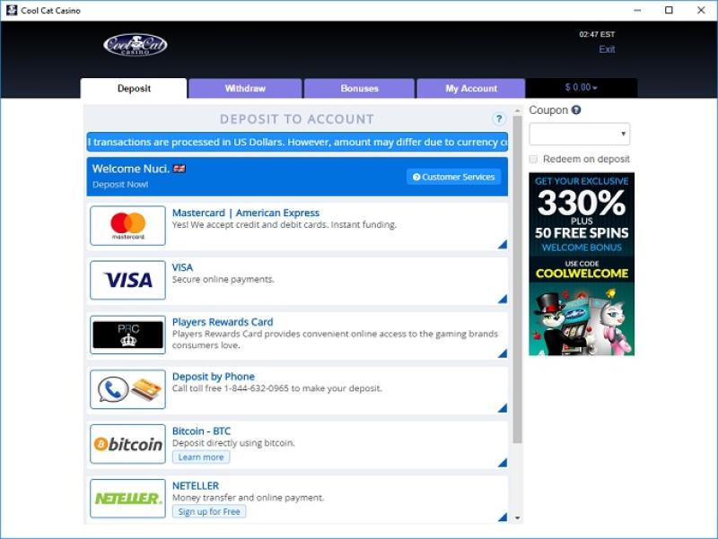 Варианты банковских операций в Cool Cat Casino