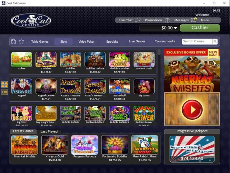 В казино Cool Cat представлено множество слотов, включая видеослоты и ограниченное количество классических игр. Также можно выиграть несколько прогрессивных джекпотов, хотя крупные выигрыши, как правило, выплачиваются не сразу.
