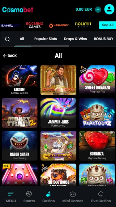 Казино Cosmobet доказывает это, предоставляя пользователям возможность выбора из более чем 110 поставщиков программного обеспечения на своем веб-сайте. Это огромное число, в которое входят такие известные имена, как NetEnt , Pragmatic Play , Yggdrasil Gaming и Evolution , а также многочисленные другие студии, такие как LuckyStreak, Xprogaming и Stakelogic.