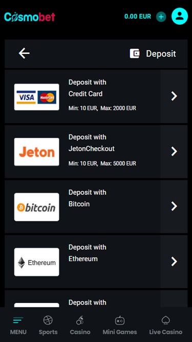 Большое преимущество этой игровой платформы заключается в том, что игроки могут использовать как традиционные, так и современные способы оплаты. Среди широко распространенных методов можно выводить и вносить средства с помощью Visa , Mastercard , Jeton , Skrill , Neteller , Paysafecard и Sofort . Те, кто предпочитает более современный и анонимный подход, могут использовать Bitcoin , Bitcoin Cash , Dash , Dogecoin , Ethereum , Litecoin , Ripple и Tether .