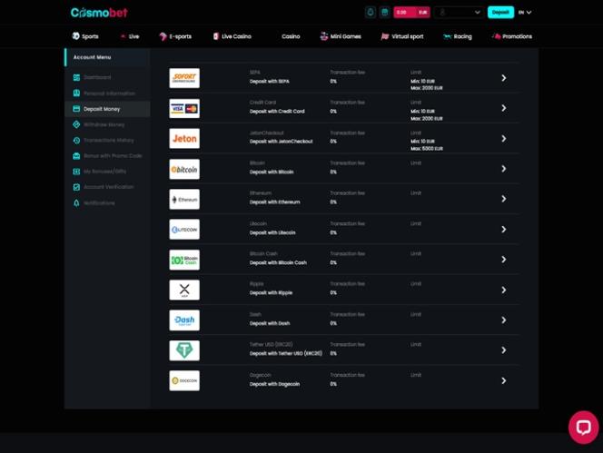 И наконец, следует отметить, что казино Cosmobet также предлагает множество систем ставок. Букмекерские конторы часто являются частью самых популярных игровых платформ, и здесь игроки могут делать ставки на множество популярных видов спорта и киберспорта, включая возможность делать ставки на матчи в режиме реального времени. Также доступны ставки на виртуальный спорт и скачки, что делает эту платформу для ставок очень конкурентоспособной.