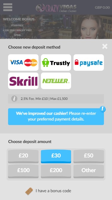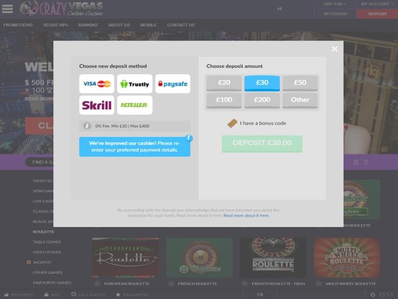 Казино Crazy Vegas начисляет своим игрокам бонусные баллы, по одному баллу за каждые 10 фунтов стерлингов, поставленных на кон. Набрав 1000 баллов, игроки могут обменять их на 5 фунтов стерлингов реальных денег в казино.