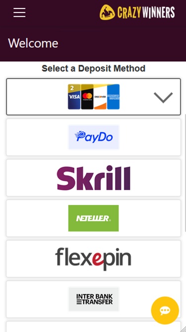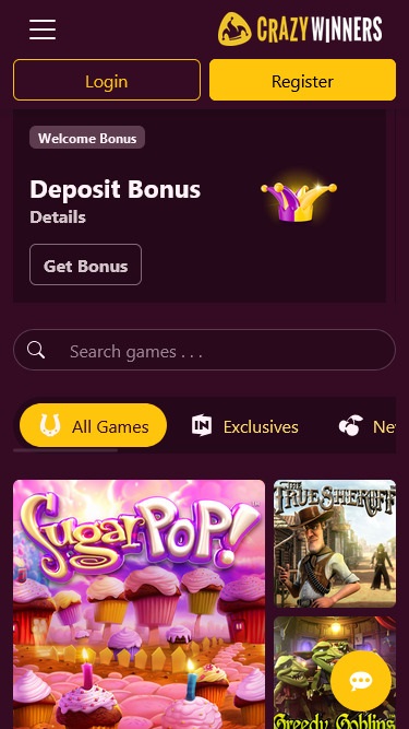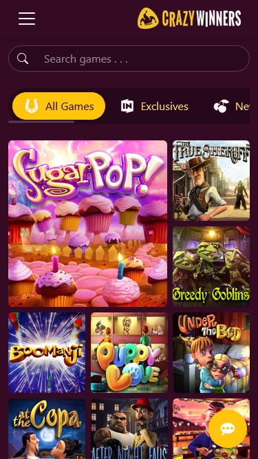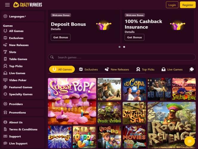 CrazyWinners также является домом для 50 Другие игры перечислены ниже: