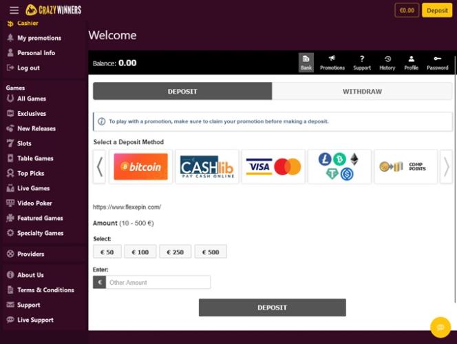 Казино CrazyWinners работает на программном обеспечении BetSoft, Genesis Gaming, Rival, Saucify, Arrows Edge, Radi8 Games, Fresh Deck Studios, Qora Games, Genii, Dragon Gaming and Dragoon Soft , которое предоставляет игры через веб-платформу. Также существует мобильная версия сайта казино, позволяющая игрокам получать доступ к играм со смартфонов и планшетов.