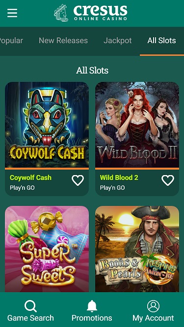 В казино Cresus представлено огромное количество игровых автоматов, включая множество видеослотов и хороший выбор классических игр. Также доступны прогрессивные джекпоты, позволяющие выиграть миллионы долларов.