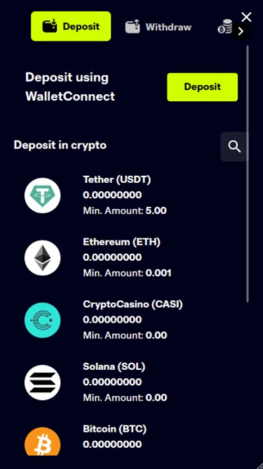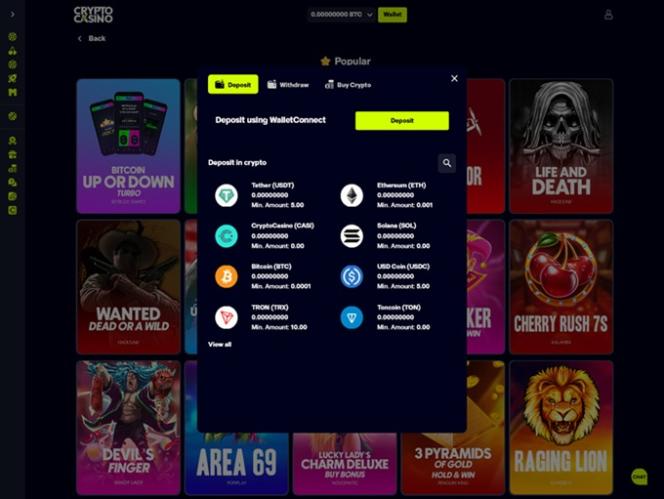 Как следует из названия, CryptoCasino — это ориентированный на криптовалюты сайт азартных игр, который позволяет игрокам использовать множество криптовалют в качестве основного способа пополнения счета и вывода средств. Среди доступных вариантов — Bitcoin , Bitcoin Cash , Cardano , Dogecoin , Ethereum , Litecoin , Solana , Tether , Tron , Ripple , USD Coin и Toncoin .
