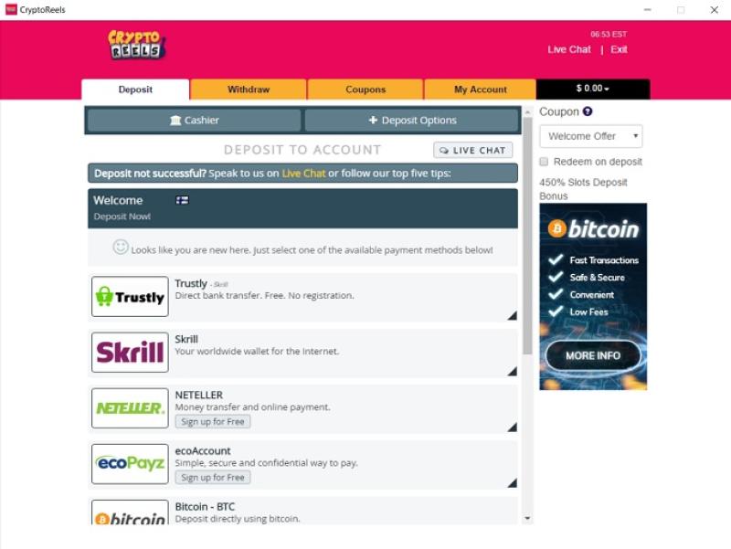 Теоретически, банковские операции в CryptoReels должны быть превосходными, поскольку они позволяют игрокам переводить средства с помощью криптовалют. Проблема в том, что нельзя доверять казино в плане выплаты выигрышей из-за плохого управления. Поэтому следует проявлять осторожность и избегать игры здесь, поскольку существуют более выгодные варианты.