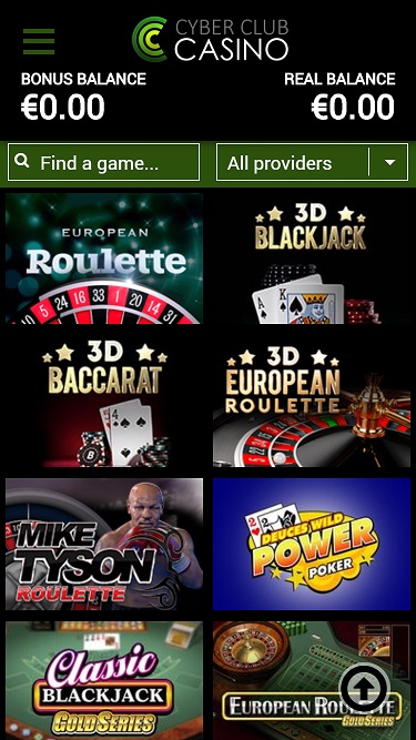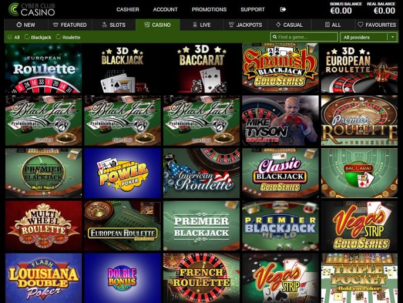 Казино Cyber Club работает на программном обеспечении Net Entertainment, BetSoft, Barcrest, ELK Studios, Ezugi, lightningboxgames, Play'n GO, Quickspin, Thunderkick, Realistic Games, Bulletproof Games, Aristocrat, Blueprint Gaming, Leander Games, NextGen, Inspired Gaming, White Hat Gaming, SG Interactive, Betdigital, Bla Bla Bla Studios and MetaGU , а игры доступны как через веб-платформу, так и через мобильный сайт.