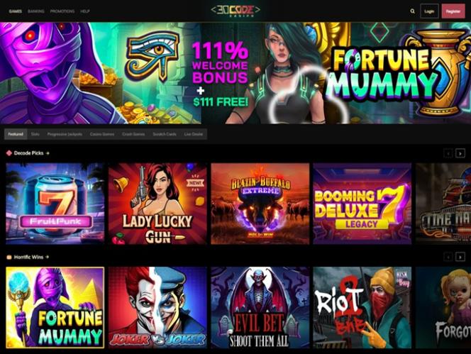 Decode Casino — это онлайн-казино, ориентированное на игроков из США и Канады. Оно входит в ту же группу, которая управляет родственными сайтами Sloto'Cash , Desert Nights, Miami Club и другими брендами, ориентированными на США. Следует отметить, что на момент написания этого обзора казино работало без игорной лицензии.