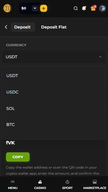 Казино DEDPRZ — это платформа, ориентированная исключительно на криптовалюты, которая принимает в качестве действительных способов оплаты только криптовалюты для пополнения счета и вывода средств. В качестве альтернативных вариантов транзакций доступны многочисленные валюты, такие как Bitcoin , Ethereum , Solana , Tether , Tron и USD Coin . К сожалению, традиционные банковские способы, такие как кредитные карты и электронные кошельки, недоступны.