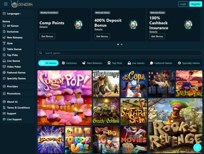 Казино Dendera работает на программном обеспечении BetSoft, Genesis Gaming, Rival, Saucify, Vivo Gaming, Arrows Edge, Radi8 Games, Fresh Deck Studios, Woohoo Games, Qora Games, Genii, Dragon Gaming and Dragoon Soft , и его игры доступны как в виде загружаемого программного обеспечения, так и в виде браузерной платформы, позволяющей играть без загрузки какого-либо программного обеспечения.Другие игры
