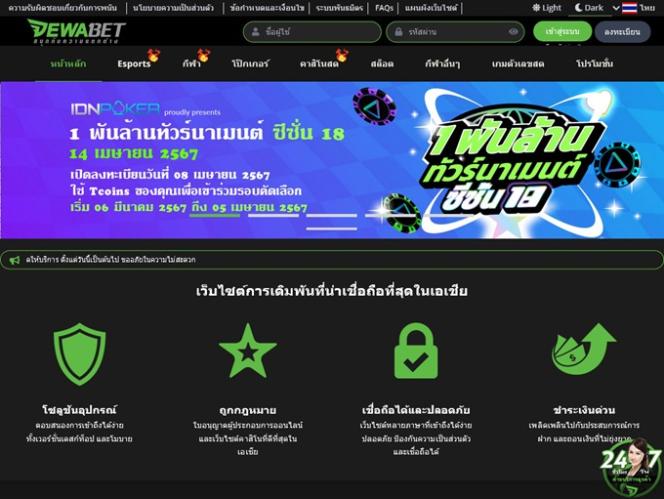 Помимо стандартных игр казино, Dewabet предлагает игрокам игры с живыми дилерами, полноценную букмекерскую контору, а также покерный зал.