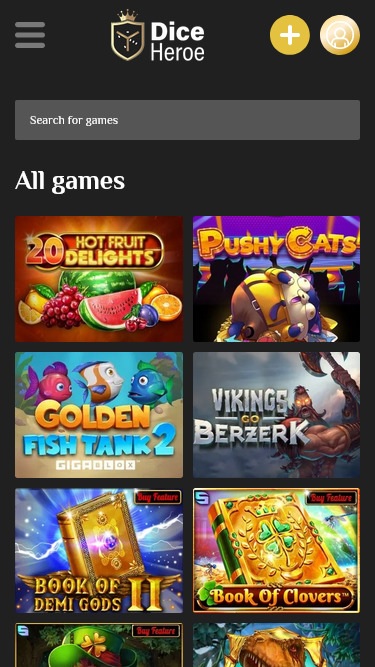 Как мы уже упоминали, DiceHeroe располагает обширной игровой библиотекой, предоставленной множеством известных поставщиков игр, таких как Yggdrasil, Relax Gaming, Spinomenal и другие.