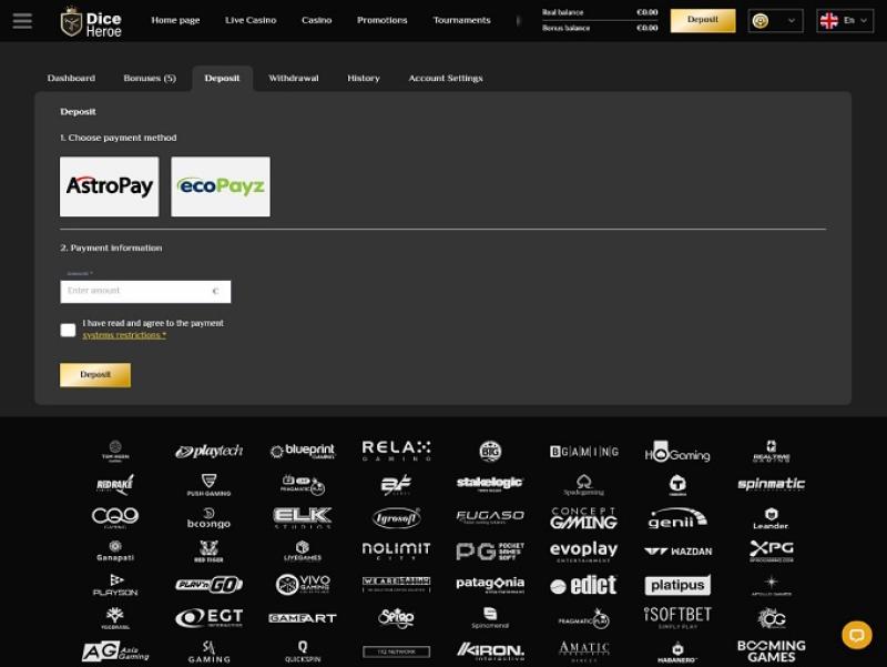 Такая обширная коллекция игр заслуживает полностью функциональной, прекрасно оформленной платформы казино, и именно это предлагает DiceHeroe Casino своим посетителям и зарегистрированным пользователям. Простота дизайна оставляет много места для того, чтобы игры действительно выделялись.