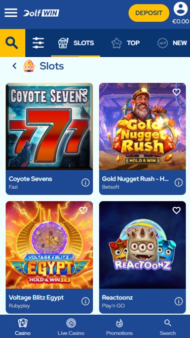 Помимо привлекательных онлайн-ставок на спорт , Dolfwin предлагает потрясающую коллекцию онлайн-игр казино. В его игровом лобби собраны лучшие игры, разработанные ведущими компаниями индустрии iGaming , и весь контент идеально оптимизирован для всех доступных портативных и настольных устройств.
