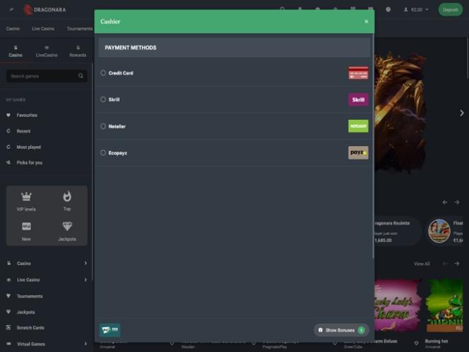 Казино Dragonara работает на программном обеспечении Microgaming, 1x2gaming, ELK Studios, Evolution Gaming, iSoftBet, Novomatic, playson, Quickspin, Relax Gaming, Endorphina, Wazdan, Betgames, Stakelogic, Pragmatic Play, Felt Gaming, GAMING1, Red Tiger Gaming, Spinomenal, Red Rake Gaming, Skillzzgaming, Fantasma Games, SYNOT Games, Kalamba, Revolver Gaming, Skywind, Triple Edge Studios, Northern Lights Gaming, Stormcraft Studios, Switch Studios, Electric Elephant Games, Pocket Games Soft, All41 Studios, Gameburger Studios, Neon Valley Studios, Golden Rock Studios, Swintt, SpinPlay Games, GONG Gaming, Buck Stakes Entertainment, Games Global, Amusnet Interactive, Wizard Games, 2by2 Gaming, Blueprint Gaming, CT Interactive, Greentube, Intouch Games, Merkur Gaming, Pariplay, Push Gaming, Tom Horn Gaming, Reel Time Gaming, Authentic Gaming, BF Games, Foxium, Just For The Win, Storm Gaming Technology, PearFiction Studios, Slingshot Studios, Fortune Factory Studios, 4ThePlayer, Crazy Tooth Studio, High 5 Games, Alchemy Gaming, Snowborn Games, Hacksaw Gaming, Max Win Gaming, Gold Coin Studios, Half Pixel Studios, SilverBack Gaming, Eurostar Studios, Aurum Signature Studios, Lucksome Gaming, Bombay Live and Kiron , а игры предоставляются через веб-платформу. Игроки также найдут на сайте Dragonara мобильную версию, позволяющую играть со смартфонов и планшетов.