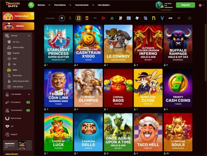 Как вы, вероятно, уже поняли из названия казино, DragonSlots в первую очередь ориентировано на предоставление полноценного опыта онлайн-слотов для поклонников этого жанра. Хотя бренд предлагает несколько других типов игр казино, слоты на реальные деньги значительно превосходят их по количеству доступных вариантов. Вот лишь некоторые из популярных игр среди игроков: