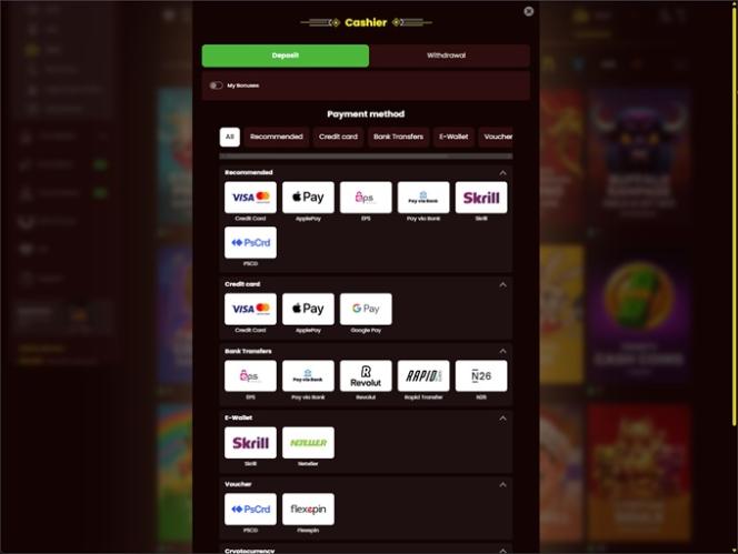Казино принимает как фиатные валюты, так и криптовалюты.