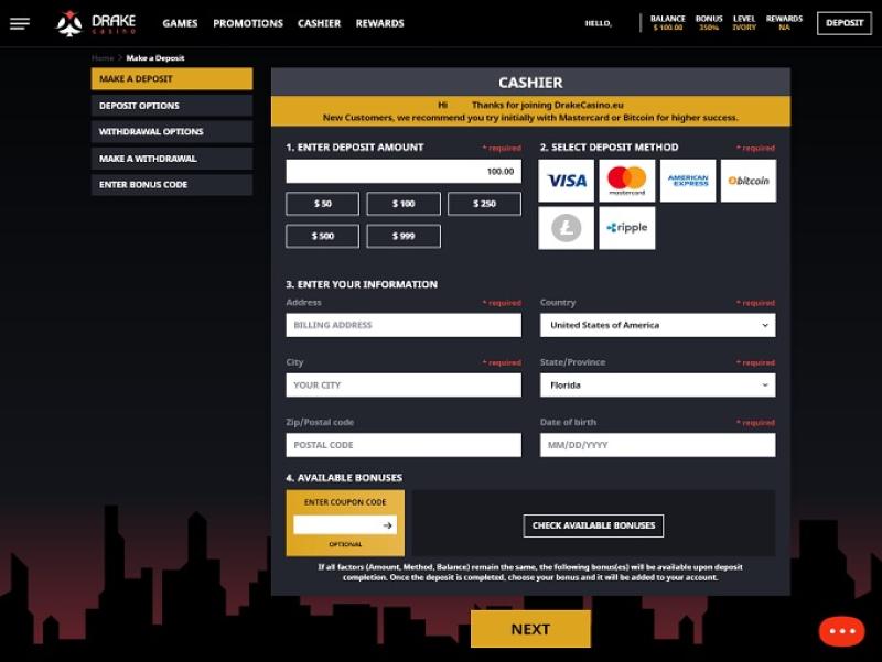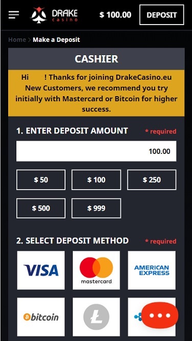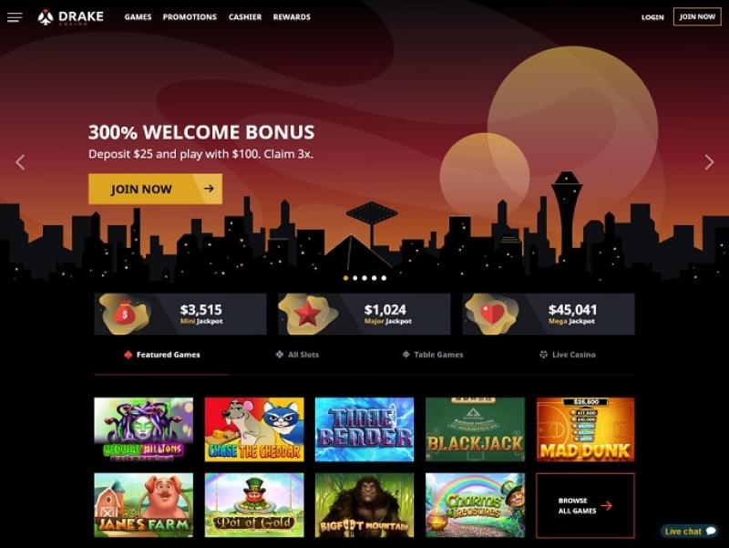 За годы своего существования Drake Casino зарекомендовало себя как надежное онлайн-казино, однако игроков может отпугнуть минимальная сумма вывода в 100 долларов, что несколько высоковато, учитывая, что казино принимает депозиты всего от 25 долларов.