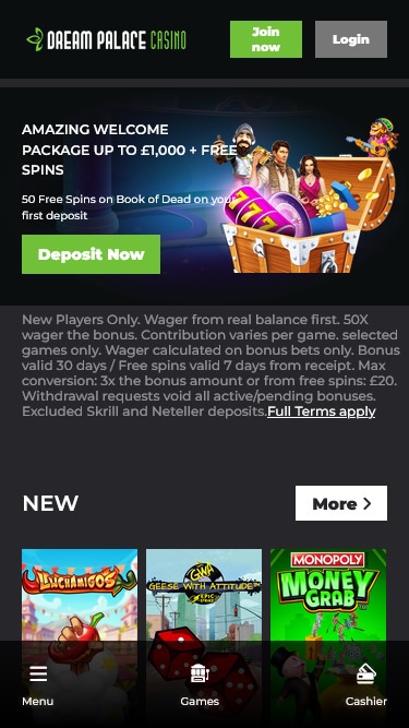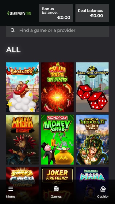 Казино Dream Palace работает на программном обеспечении Microgaming, Net Entertainment, 1x2gaming, Barcrest, Big Time Gaming, ELK Studios, Evolution Gaming, EYECON, lightningboxgames, Play'n GO, Rabcat, Thunderkick, Nolimit City, Red Tiger Gaming, Spinomenal, Skywind, Triple Edge Studios, Northern Lights Gaming, Stormcraft Studios, Switch Studios, All41 Studios, Gameburger Studios, Pulse 8 Studios, Neon Valley Studios, Shuffle Master, SpinPlay Games, Real Dealer Studios, GONG Gaming, On Air Entertainment, Buck Stakes Entertainment, Games Global, Blueprint Gaming, NextGen, ProgressPlay, Tom Horn Gaming, WMS, Inspired Gaming, SG Interactive, Red7Mobile, CORE Gaming, Scientific Games, Reel Time Gaming, Iron Dog Studio, Old Skool Studios, Foxium, Just For The Win, PearFiction Studios, Slingshot Studios, Fortune Factory Studios, Gamevy, Crazy Tooth Studio, Alchemy Gaming, Black Pudding Games, Snowborn Games, Hacksaw Gaming, SimplePlay, Gold Coin Studios, Half Pixel Studios, Aurum Signature Studios and Lucksome Gaming , что обеспечивает ему обширную библиотеку из нескольких сотен игр. Казино доступно через веб-платформу, а игроки также могут получить доступ к сайту со своих мобильных устройств.Blackjack