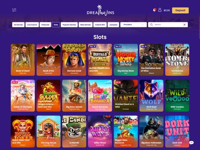 DreamWins предлагает игрокам привлекательную коллекцию игровых автоматов, включающую игры с популярными темами, реалистичным звуковым оформлением, современной графикой и многим другим. Удивительные бонусные функции, такие как бонусные вращения и раунды, множители, дикие символы и другие интересные опции, не дадут игрокам заскучать и увлекут их.