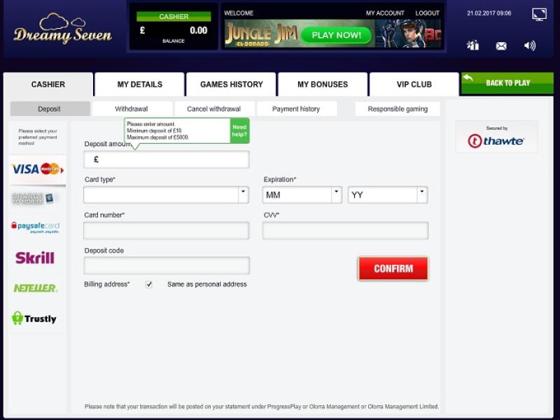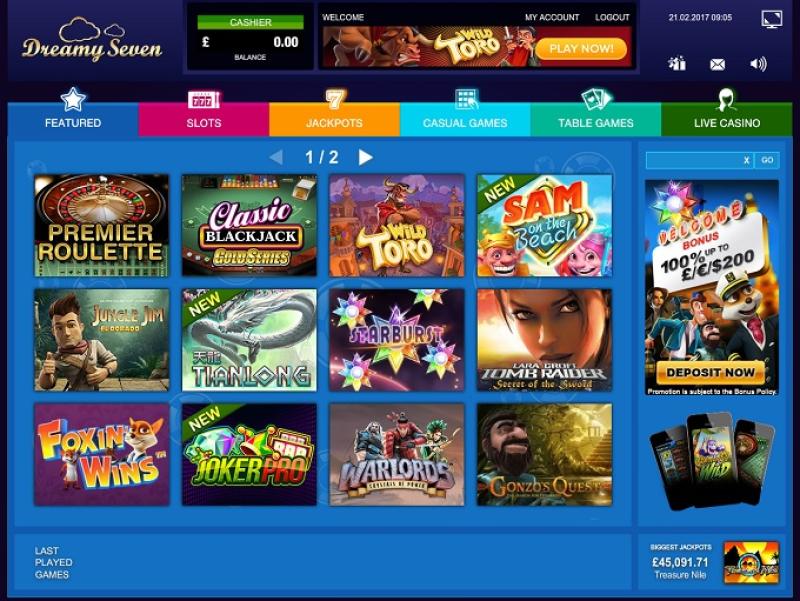 Казино DreamySeven — это онлайн-букмекерская контора, принадлежащая и управляемая компанией Sandeal Trading Ltd. Казино открылось в 2012 году и обладает огромной библиотекой игр, крупными прогрессивными джекпотами и быстрой выплатой выигрышей, что делает его отличным местом для игры.Информация о казино
