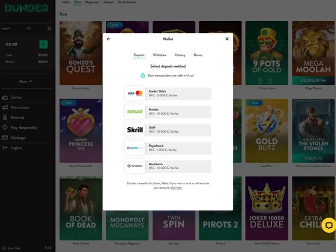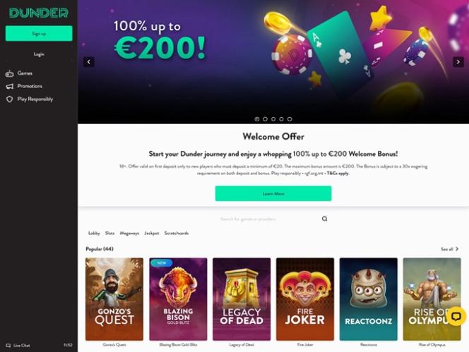 Dunder Casino — это онлайн-казино, основанное в 2016 году компанией MT SecureTrade Limited. Казино отличается смелым и современным дизайном, сочетает в себе игры от известных разработчиков, таких как Net Ent, а также отличается невероятно быстрой выплатой выигрышей и выгодными бонусными условиями. Все это вместе делает Dunder Casino одним из лучших новых онлайн-казино, с которыми мы столкнулись в этом году.