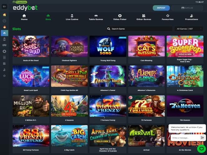 Игроки, ищущие онлайн-казино с широким выбором игр, непременно оценят обширную библиотеку игр EddyBet Casino. Здесь вы найдете онлайн-слоты, игры с живыми дилерами, настольные игры и бинго, что позволит вам получить незабываемые впечатления от азартных игр, наполненных уникальными развлечениями.