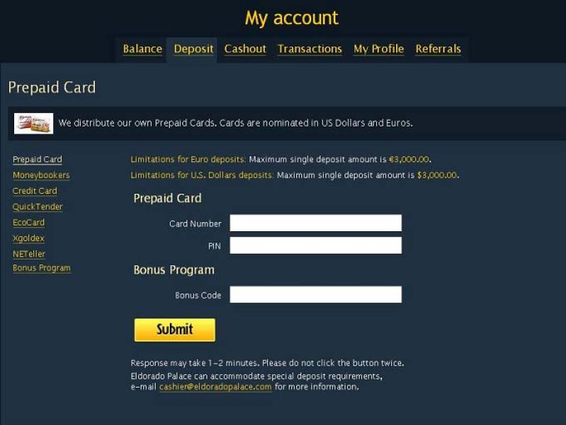El Dorado Palace — это онлайн-букмекерская контора, основанная в 2009 году. Сайт базируется в Коста-Рике и за время своего существования заработал плохую репутацию из-за медленных выплат, невыплат выигрышей и неэффективной работы службы поддержки клиентов. Поэтому мы настоятельно рекомендуем вам держаться подальше от этого казино.Информация о казино