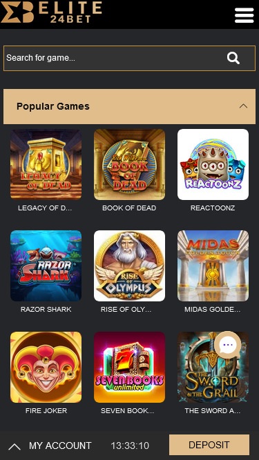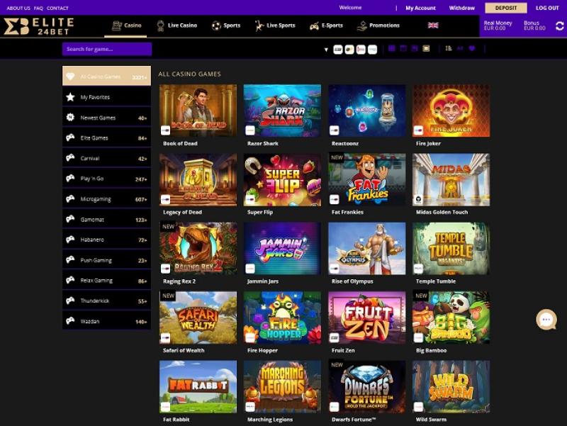 На Elite24Bet вы найдете потрясающий ассортимент известных и популярных видеослотов, таких как: Book of Dead, John Hunter and the Book of Tut, Reactoonz, Big Bass Bonanza, Rise of Olympus, The Dog House, Legacy of Dead, Super Flip, Rainbow Gold, Fat Frankies, Midas Golden Touch, Queenie, Raging Rex 2, Safari of Wealth, Fruit Zen, Wild Beach Party, Sakura Fortune, Tales of Dr. Doolittle, Ramses Book, Fire Joker, The Sword and The Grail, Books & Bulls, Hammer of Vulcan, Fancy Fruits, Big Bad Wolf, Eastern Emeralds, Ramses Book Respins of Amun Re, Book of Juno, Majestic Winter, The Dragon Castle, Royal Seven XXL, Million Dracula, Take 5, Lucky Jack - Lost Jungle, Queen of Embers, Sticky Diamonds, Barbarians Gold, Orient Train, Crystal Ball, Reel Fruits, Reactoonz 2, La Dolce Vita, Book of Loki, Book of 1001 Nights, Super Sevens, Sisters of The Sun, Western Tales, Lucky Cloverland, Muertitos Video Bingo, Beer Collection 40 Lines, Zulu Gold, Lucky Day: Cheltenham Champions, Mexican Chilies, Calavera Bingo, Tomatina Bingo, Dr. Toonz, The Great Albini 2, It Came From Venus, Irish Cheers, Big Bad Wolf Megaways, Midnight Money...