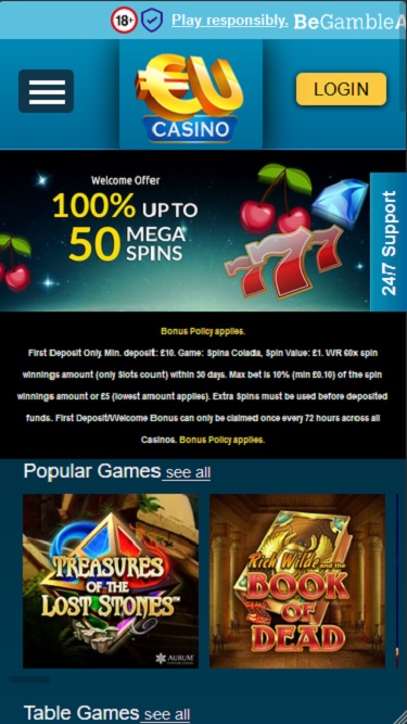 Казино EU Casino работает на программном обеспечении Microgaming , Net Entertainment , Playtech , 1x2gaming , Barcrest , Big Time Gaming , ELK Studios , Evolution Gaming , EYECON , Ezugi , Habanero Systems , iSoftBet , lightningboxgames , Oryx , Play'n GO , Quickspin , Rabcat , Relax Gaming , Thunderkick , Yggdrasil , Wazdan , Realistic Games , Booming Games , Stakelogic , Pragmatic Play , Nolimit City , Red Tiger Gaming , IGT , Red Rake Gaming , Skillzzgaming , SYNOT Games , Kalamba , Triple Edge Studios , Northern Lights Gaming , All41 Studios , Gameburger Studios , Pulse 8 Studios , Neon Valley Studios , Spearhead Studios , SpinPlay Games , GONG Gaming , Lady Luck Games , Buck Stakes Entertainment , Games Global , Amusnet Interactive , 2by2 Gaming, Blueprint Gaming , Merkur Gaming, NextGen , Push Gaming, Inspired Gaming, Cayetano, Genii, SG Interactive, Gamomat, Ganapati, Iron Dog Studio, Old Skool Studios, Foxium, Just For The Win, PearFiction Studios, Slingshot Studios, Golden Hero, Fortune Factory Studios, Green Jade Games, 4ThePlayer, AvatarUX, Crazy Tooth Studio, High 5 Games, Alchemy Gaming, Snowborn Games, Hacksaw Gaming, Max Win Gaming, Gold Coin Studios, Half Pixel Studios, Peter And Sons, Eurostar Studios, Aurum Signature Studios and Armadillo Studios , а игры предоставляются через веб-платформу. В настоящее время отсутствует мобильная версия сайта, что несколько разочаровывает.