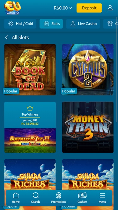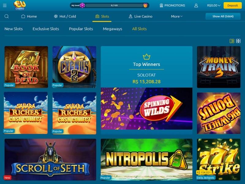 В EU Casino представлены сотни игровых автоматов, и игроки найдут здесь одни из лучших видеослотов от всемирно известных разработчиков, таких как WMS, Aristocrat, Net Entertainment и других. Также доступны прогрессивные джекпоты, которые в любой момент могут принести миллионы евро.