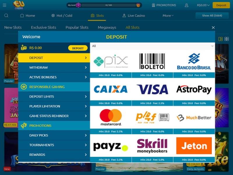 Варианты банковских операций в EU Casino