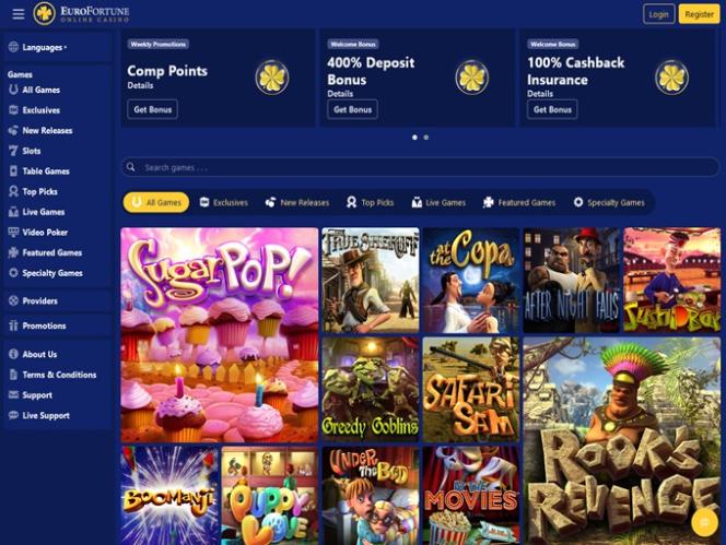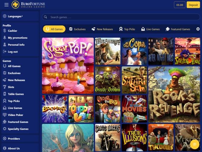 Казино EuroFortune работает на программном обеспечении Net Entertainment, BetSoft, iSoftBet, playson, Rival, Vivo Gaming, Arrows Edge, Wizard Games, Pariplay and Sandstorm , а доступ к его играм осуществляется через веб-платформу, позволяющую играть прямо в веб-браузере.Другие игры