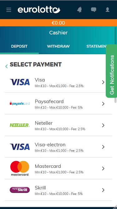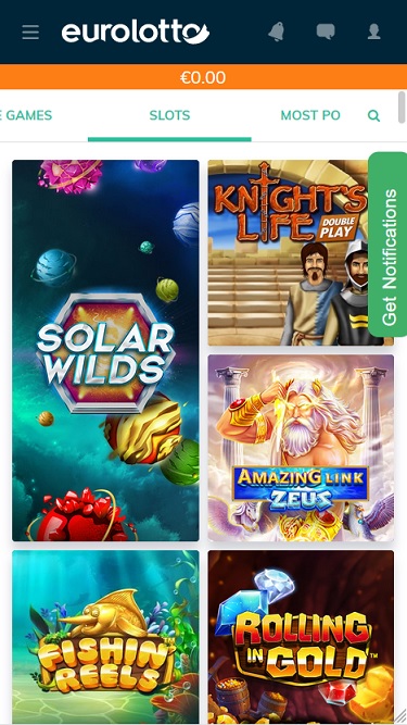 Казино EuroLotto работает на программном обеспечении Microgaming, Net Entertainment, BetSoft, Barcrest, Big Time Gaming, ELK Studios, Evolution Gaming, iSoftBet, Oryx, Play'n GO, Thunderkick, Yggdrasil, Pragmatic Play, Nolimit City, Red Tiger Gaming, Fantasma Games, Kalamba, Triple Edge Studios, Northern Lights Gaming, All41 Studios, TrueLab Games, SpinPlay Games, Games Global, 2by2 Gaming, Bally Technologies, Blueprint Gaming, NYX Interactive, SG Interactive, Gamomat, Slingshot Studios, Golden Hero, Fortune Factory Studios, Gamevy, Crazy Tooth Studio and Half Pixel Studios , а игры предоставляются через веб-платформу, позволяющую играть через веб-браузер.