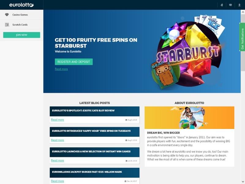 Казино EuroLotto — это онлайн-сайт для ставок, основанный в 2011 году компанией EuroSlots Limited. Сайт специализируется на лотереях, бинго и кено, но также предлагает ряд игр казино. Сайт известен своей обширной библиотекой игр и своевременными выплатами, что делает EuroLotto отличным местом для игры.