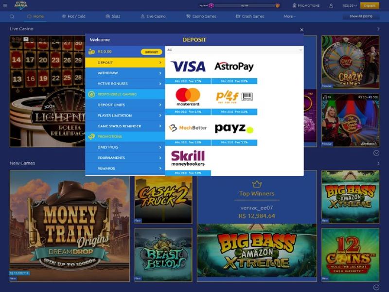 Помимо стандартных игр казино, EuroMania также предлагает своим игрокам полноценное казино с живыми дилерами.