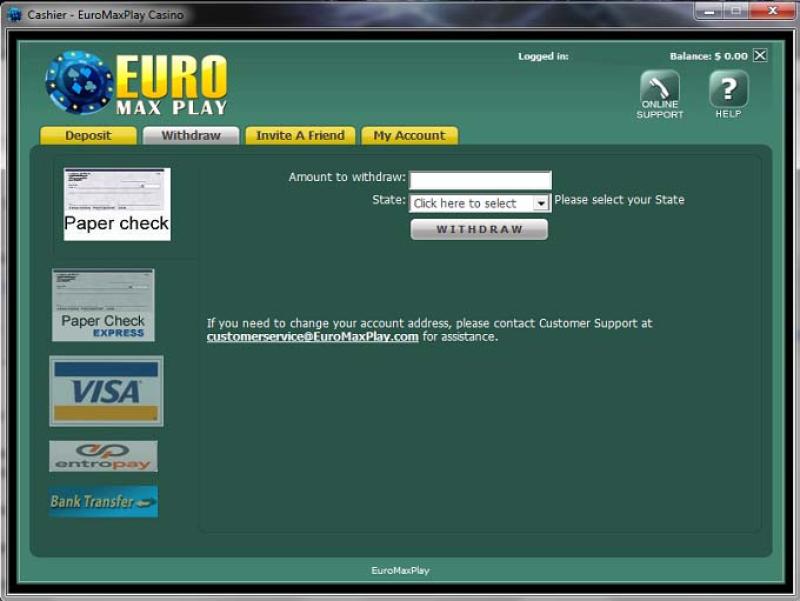 EuroMaxPlay начисляет игрокам 1 бонусный балл за каждый поставленный доллар. После накопления 100 бонусных баллов игроки могут обратиться в кассу и обменять их на 1 доллар наличными.