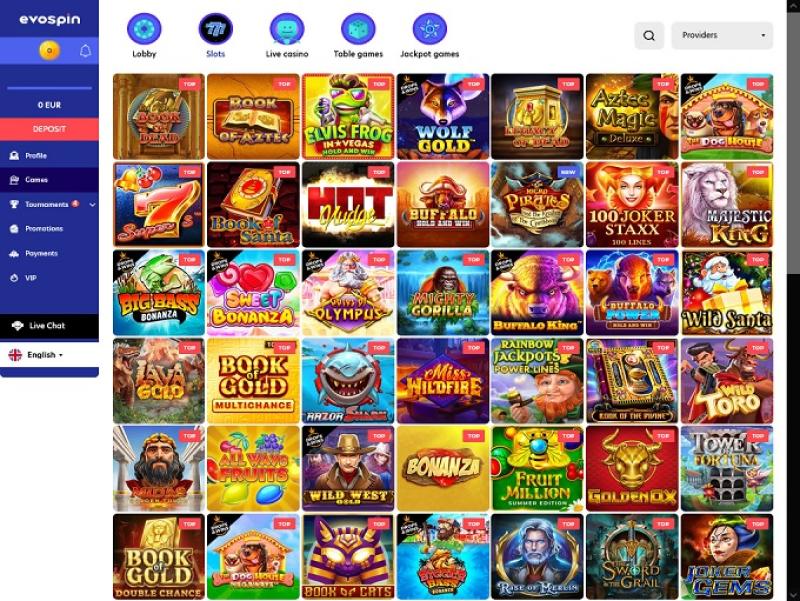 Evospin работает на платформах множества ведущих провайдеров: Microgaming, NetEnt , Evolution Gaming, BetSoft, Pragmatic Play, Play n' Go , BTG, Quickspin, ELK, Red Tiger, Thunderkick, Rabcat, Lightning Box, Playson, 1x2 Gaming, iSoftBet, JFTW, Booming Games, Wazdan, No Limit City, Iron Dog Studio, Foxium, 2by2 Gaming, Triple Edge Studios, Tom Horn, Push Gaming, Genesis Gaming, Fantasma Games, Kalamba, Gamburger Studios, All41 Studios, Stormcraft Studios, WMS, Fortune Factory Studios, Playtech , Slingshot Studios, Amatic, Realistic Games, Crazy Tooth Studio, Half Pixel Studios, Pariplay, Neon Valley Studios, Pulse 8 Studios, Skillz Gaming, Red Rake Gaming, Fugaso, TrueLab Games, Switch Studios. Golden Rock Studios, Ainsworth, Eurostar Studios, Northern Lights Gaming, Bally Technologies, Softswiss , BGAMING, Old Skool Studios, Gamevy, Barcrest, Hacksaw Gaming, Pocket Games Soft, SilverBack Gaming, Electric Elephant Games, GONG Gaming, PearFiction Studios, Max Win Gaming, STHLM Gaming, Snowborn Games, Shuffle Master, Red7 Mobile, Novomatic, Ash Gaming, Sigma Gaming, Wild Streak Gaming, Aurum Signature Studios, Swintt, Greentube, Plank Gaming, Rarestone Gaming, Gaming1.