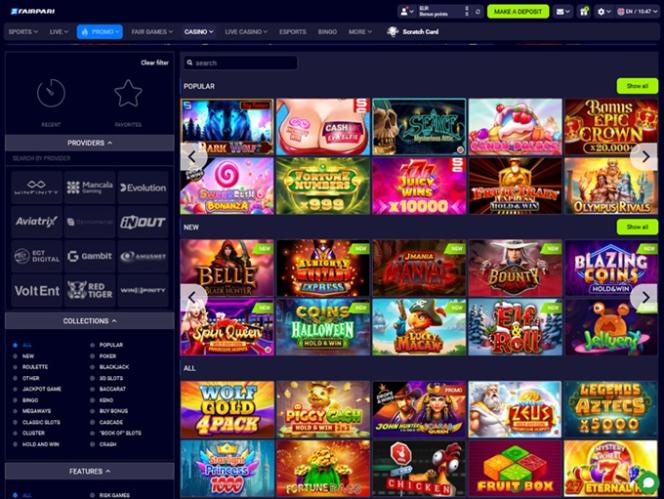 Казино Fairpari может похвастаться впечатляющей библиотекой игр, предоставленной одними из самых известных студий в сфере iGaming.
